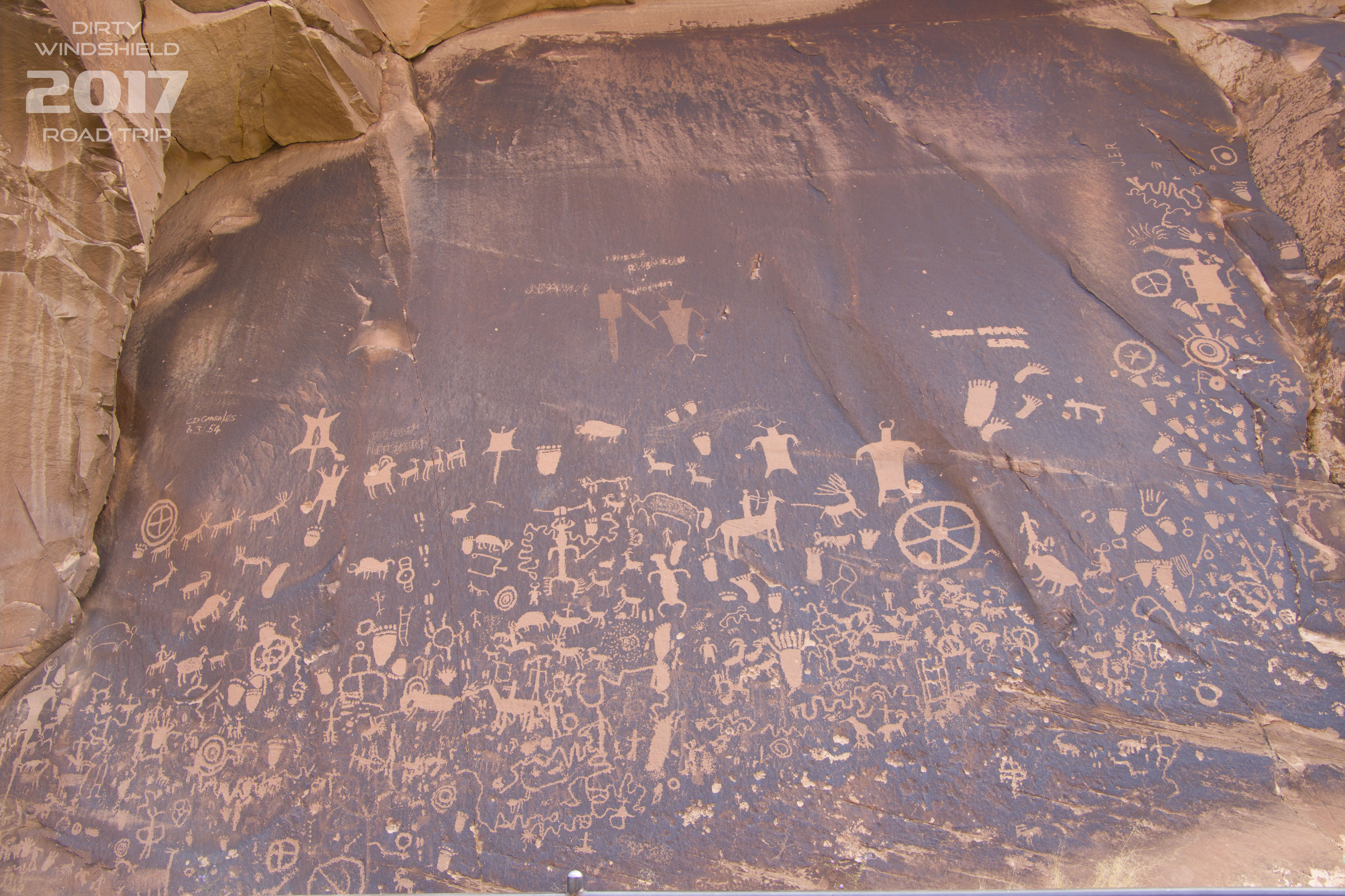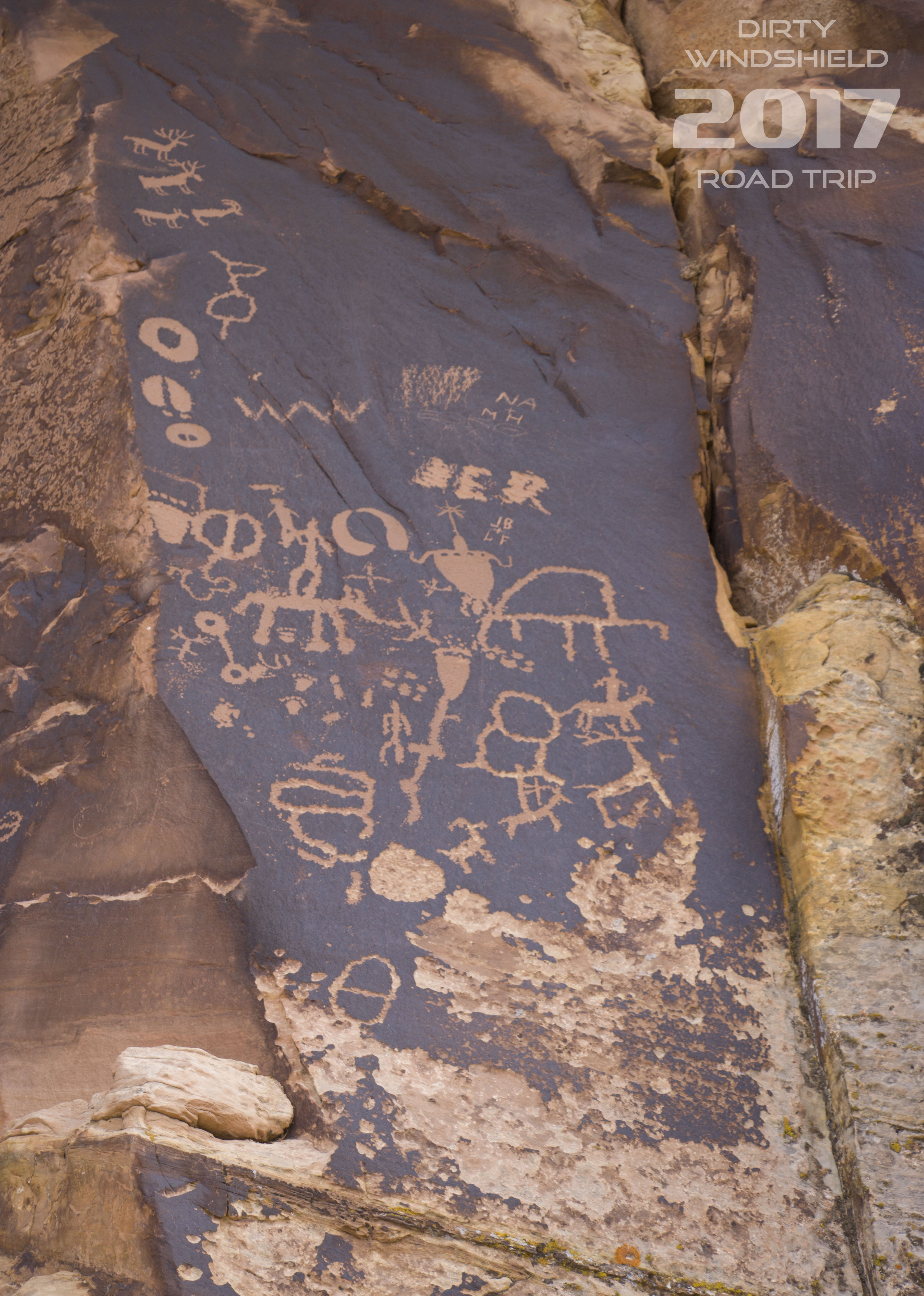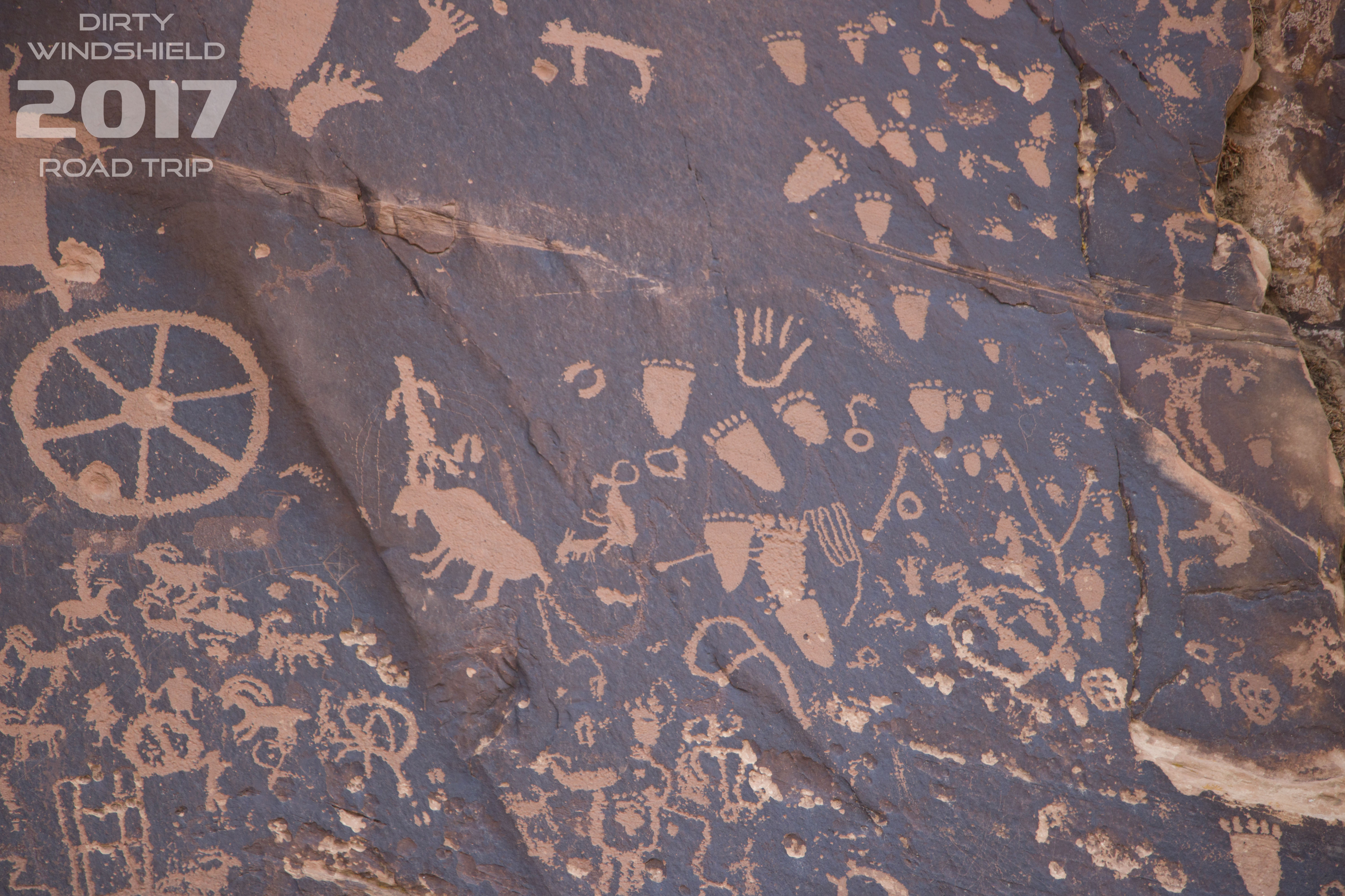 Our first stop, Newspaper Rock Archaeological Site, showcased a massive set of petroglyphs. Archaeologists believe these petroglyphs were etched into the Sandstone over the course of approximately 2000 years from BC time until 1300AD. They also believe that several tribal groups created the art here.